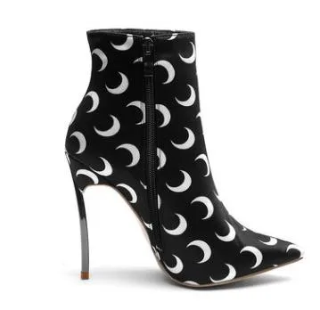 One of the standout features of these ankle boots is the unique moon print in white that adorns the upper part of the boots. The moon print adds an element of celestial charm and creates a sense of mystery. The print is visually appealing and adds a touch of individuality to the boots, making them a distinctive choice for fashion-forward women.