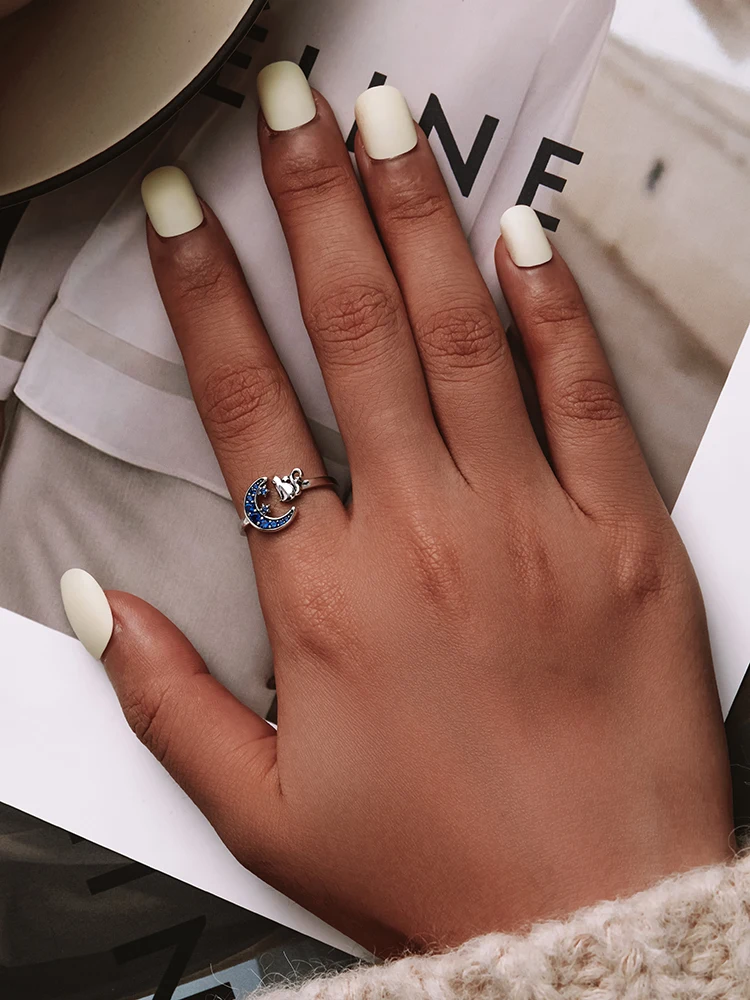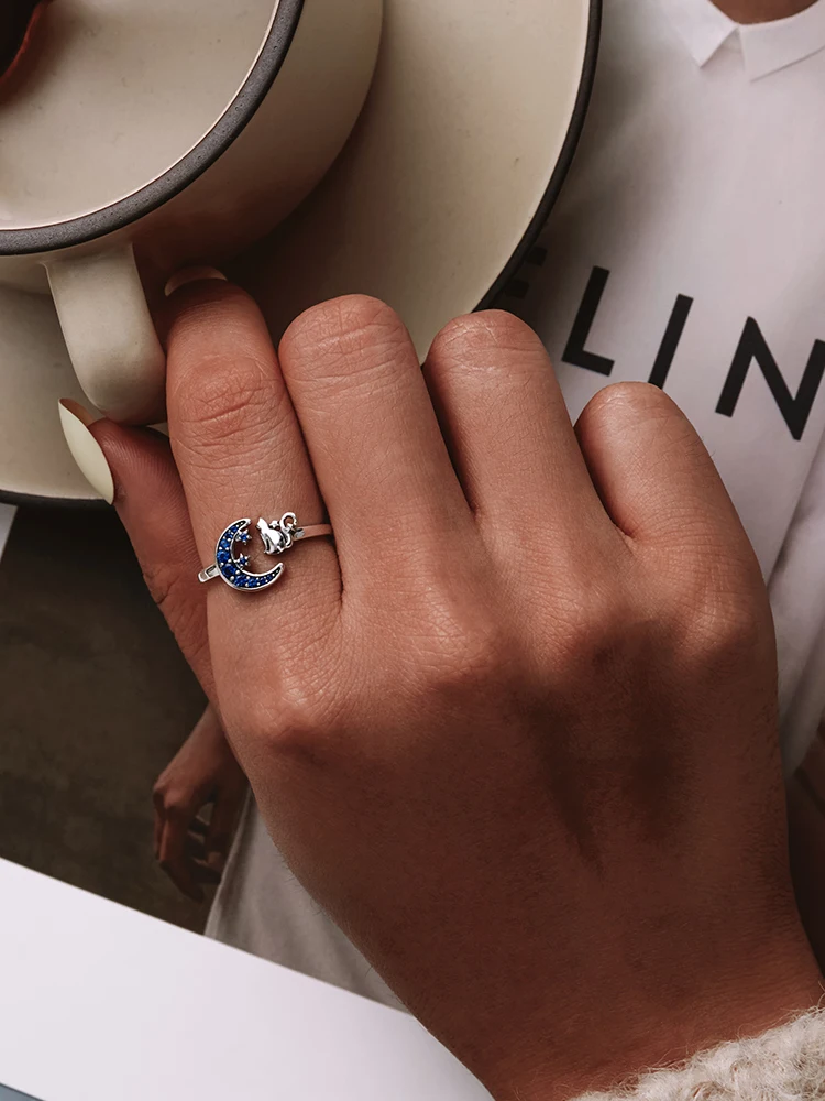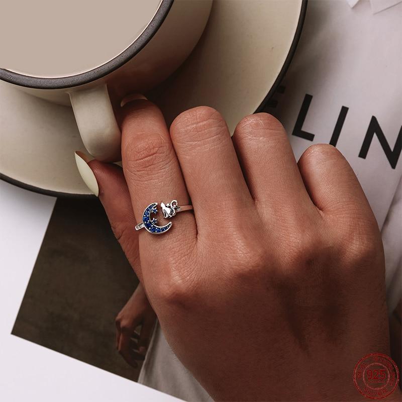 The matching design of the kitten and the blue moon is like wearing the entire starry sky on your hand.