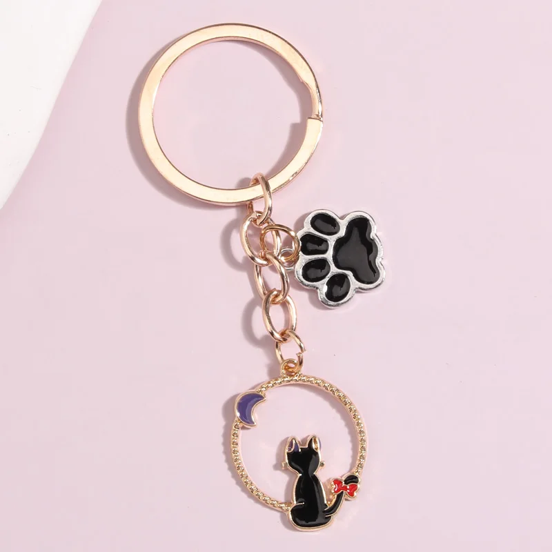 The overall effect of the keychain is a cute and whimsical accessory that is perfect for cat lovers and anyone who appreciates the beauty of the moon. The combination of the moon and cat motifs, along with the variation of a heart and paw accents, creates a charming and playful design that is sure to delight anyone who uses it.