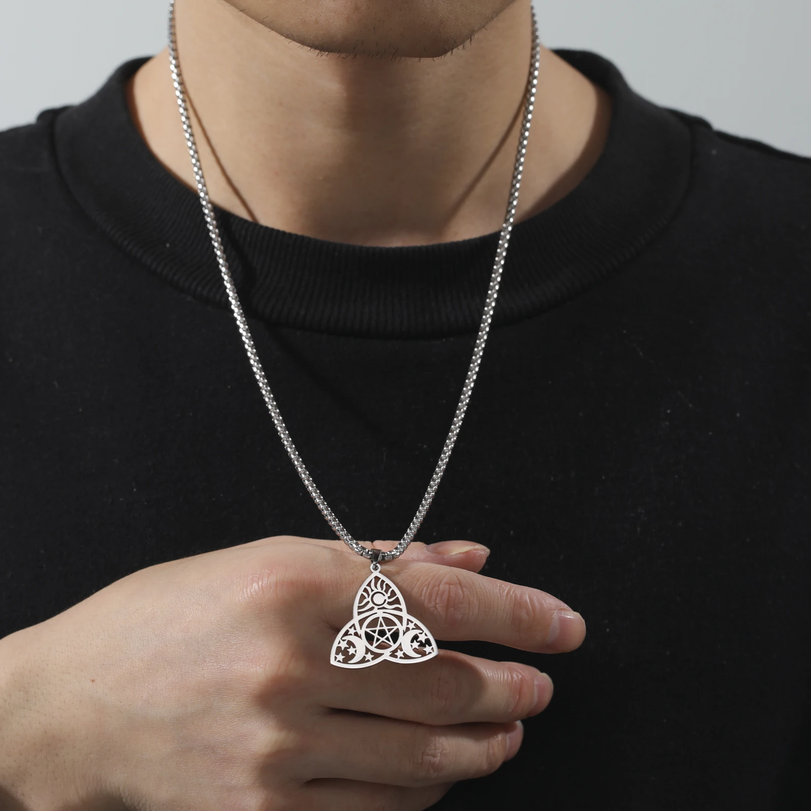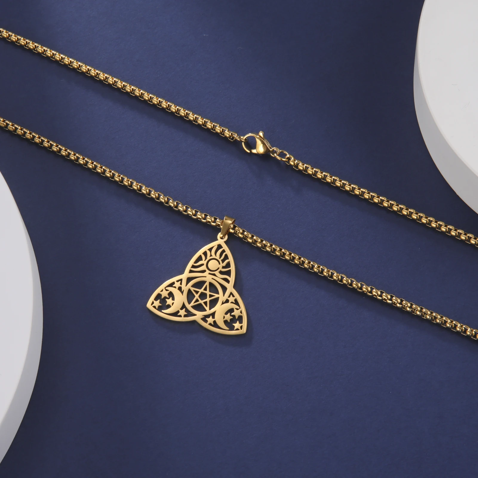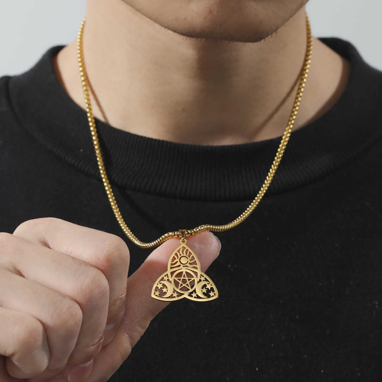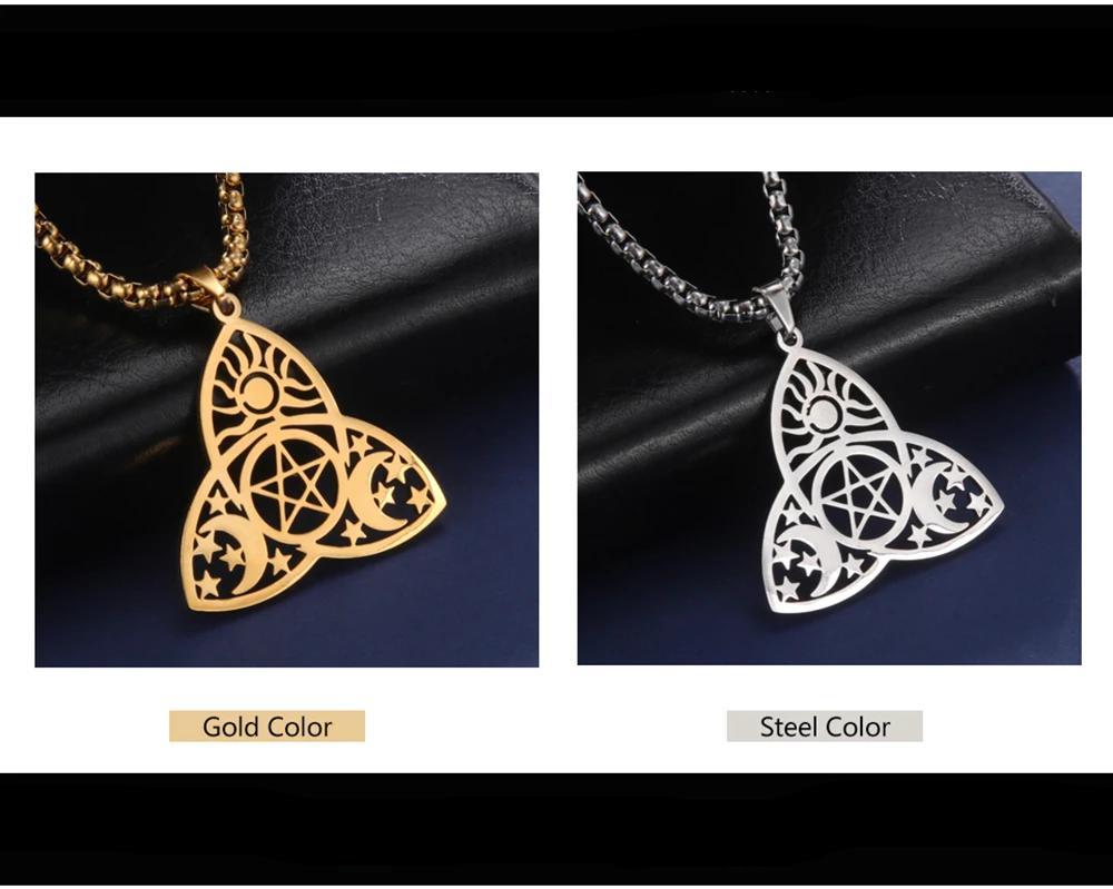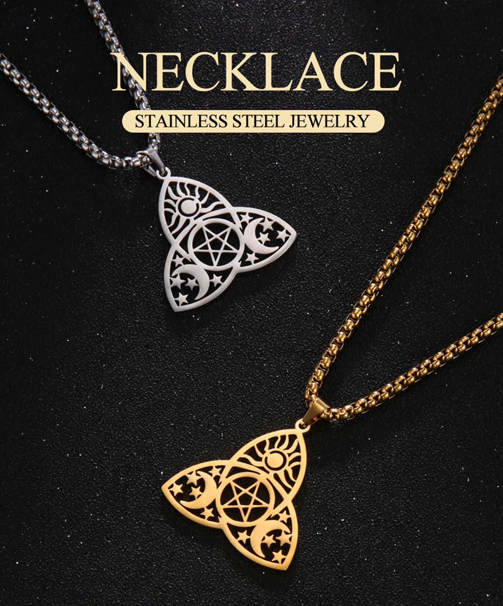 Embrace the enchantment of our Mystical Luna variation in the Moon Goddess Necklace collection. This design draws inspiration from the mystical allure of the moon, capturing its magical essence. Available in both gold and steel color, and tailored for men and women, Mystical Luna is a versatile accessory that transcends fashion trends.