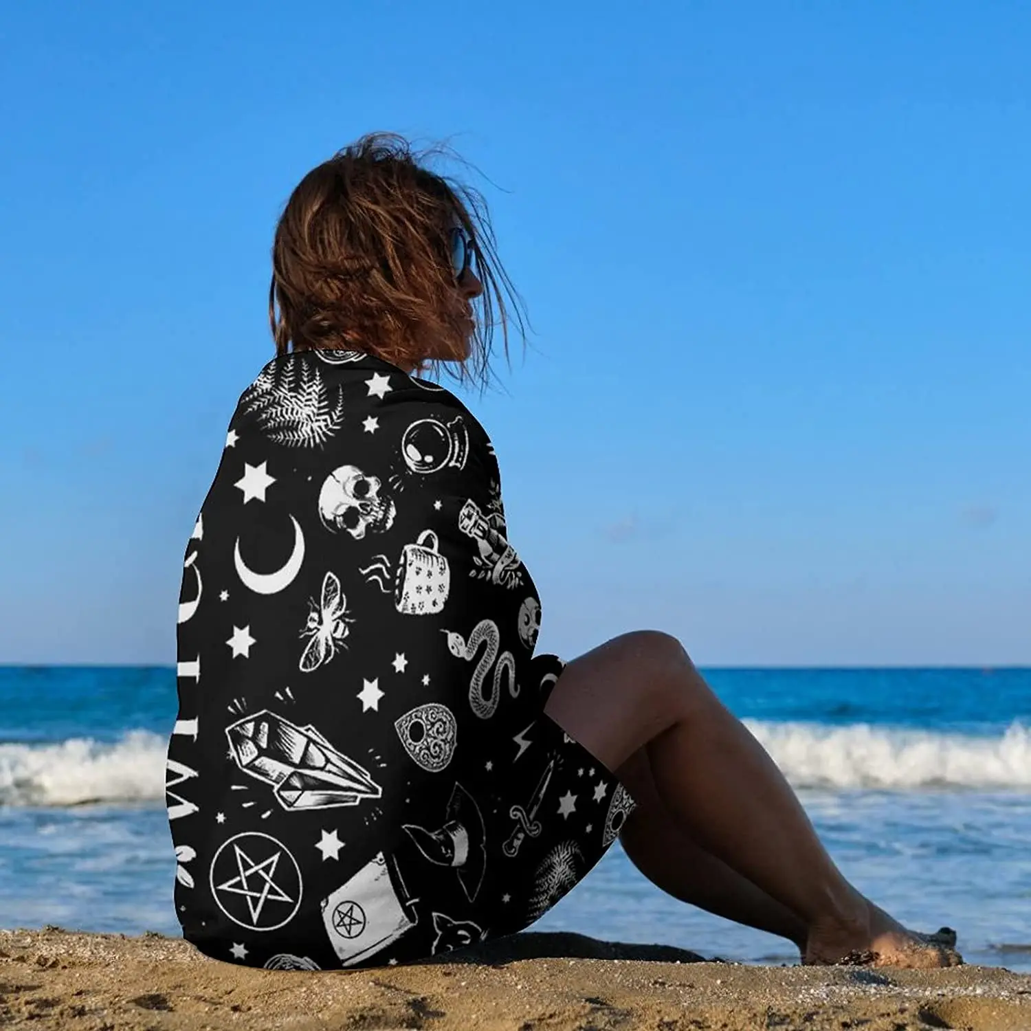 The Moon Gothic Beach Towel is the ultimate blend of style and functionality for your beach, pool, or camping adventures. This captivating towel features a magical cat moon gothic pattern set against a striking black backdrop, making it a unique and eye-catching accessory for any occasion.