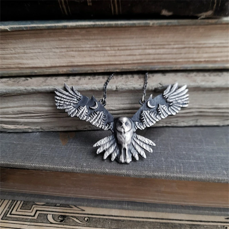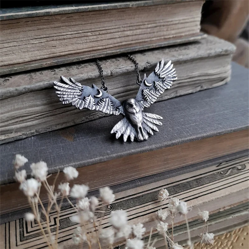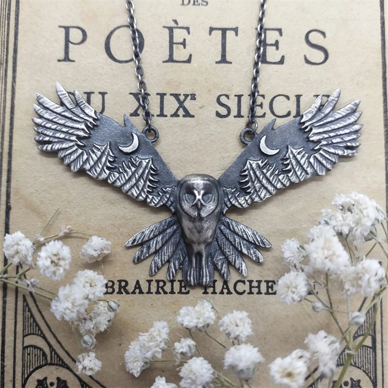 The Owl Moon Pendant Necklace is a stunning piece of jewelry that features a beautifully crafted owl pendant suspended from a delicate chain. The pendant is intricately designed to depict an owl in flight, with its wings outstretched and its eyes gleaming with a sense of mystery and wisdom.
