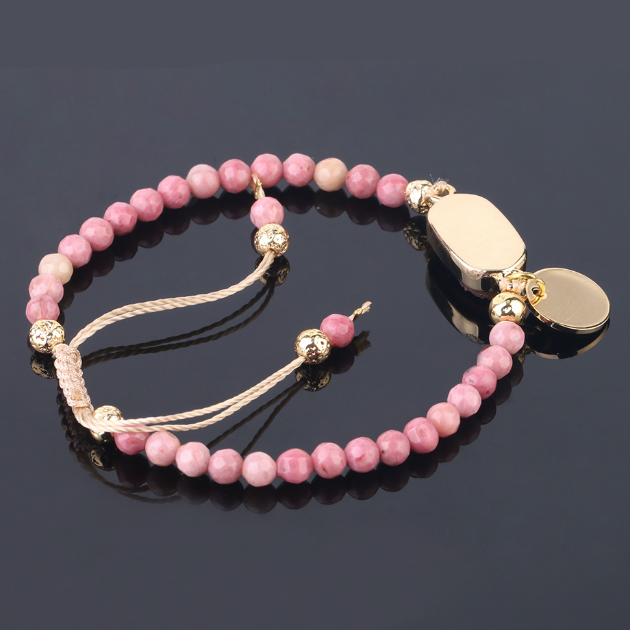 The pink stones used in the bracelet are carefully chosen for their vibrant and eye-catching hues. The natural stones may include varieties such as rose quartz, rhodonite which are known for their beautiful pink tones that can range from soft pastels to rich and bold shades. These stones are believed to carry properties of love, compassion, and emotional healing, making the bracelet not only a fashionable accessory but also a meaningful one.