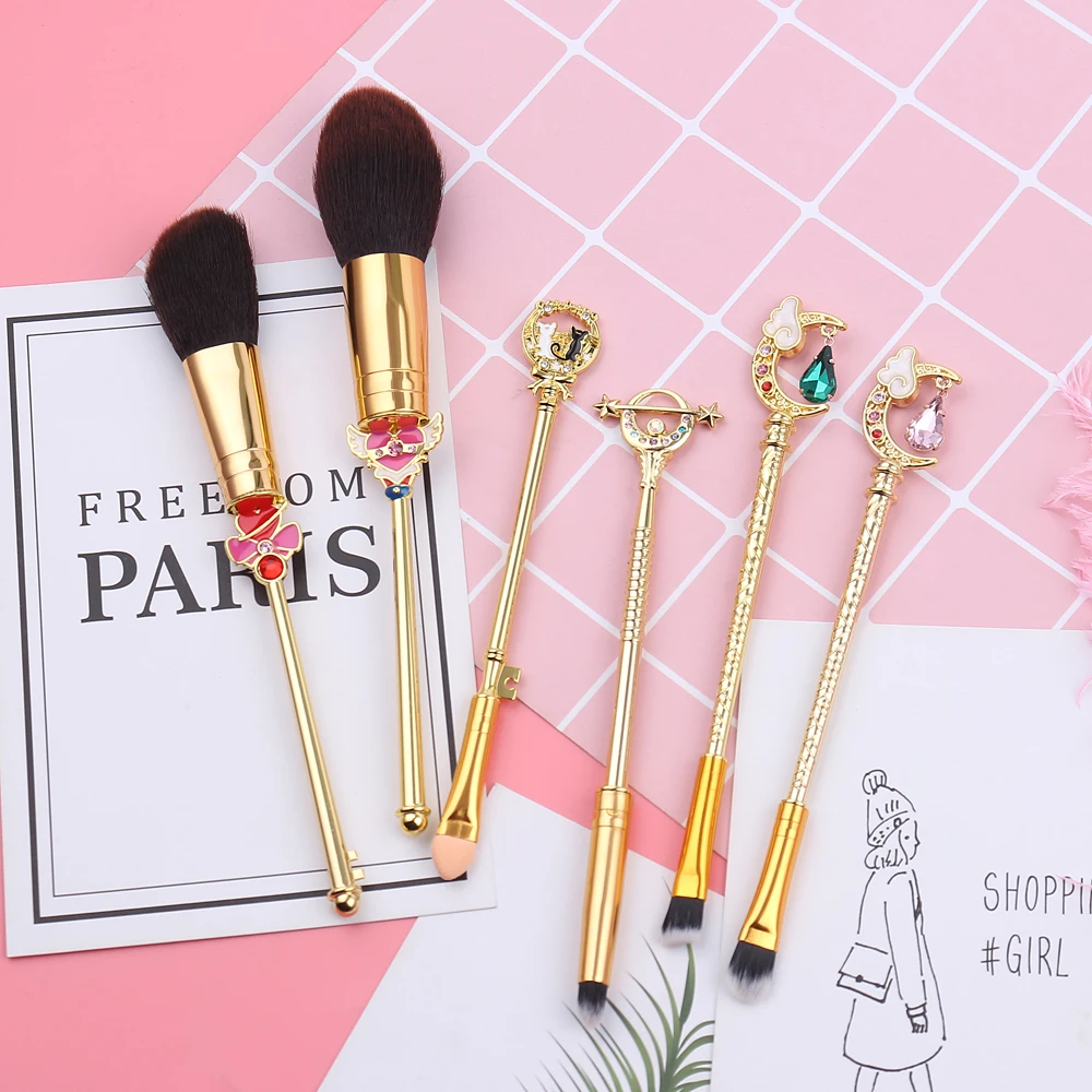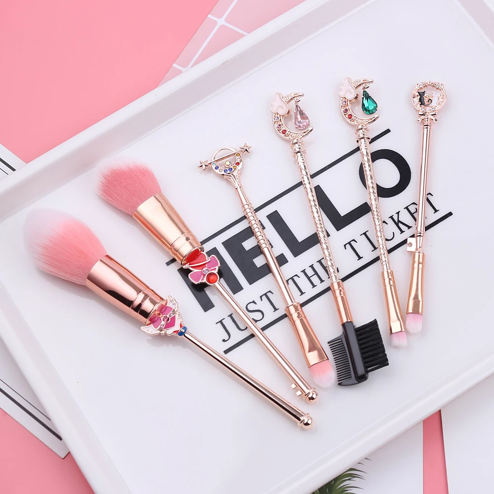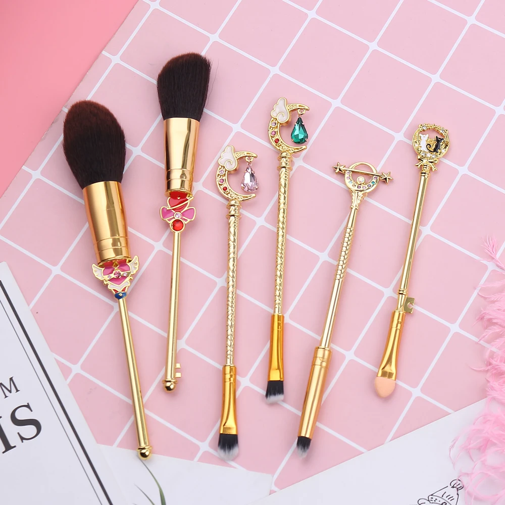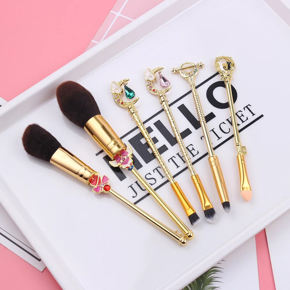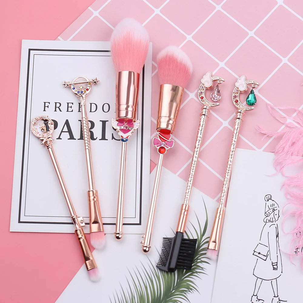 The Sailor Moon Makeup Brushes Set is a collection of high-quality makeup brushes inspired by the popular anime series “Sailor Moon.” The set includes a total of 6 brushes, each with a unique design and function.