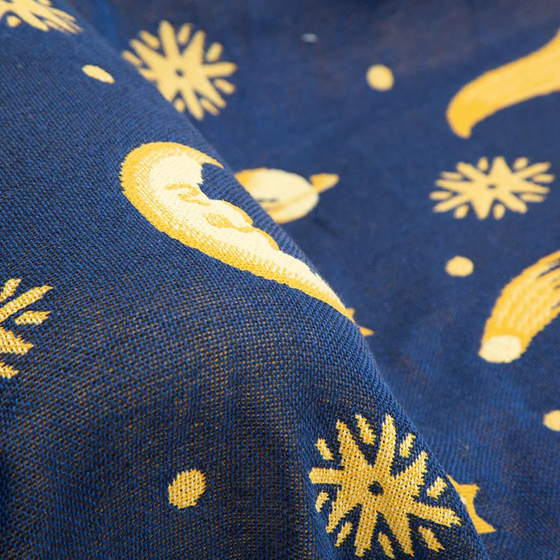 Wrap yourself in celestial warmth with the Sun Moon Star Blanket. It is perfect for adding a touch of moon charm to any space.